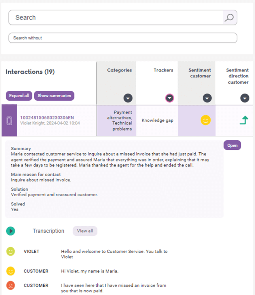 AI Insights is like getting an x-ray of your interactions. Discover and auto-categorize reasons for contact using leading language model that understands phrases, meaning and context. Track sentiment of all interactions and identify knowledge gaps. Deep dive into what drives customer satisfaction, how it develops and how it’s connected to the topic of every interaction.