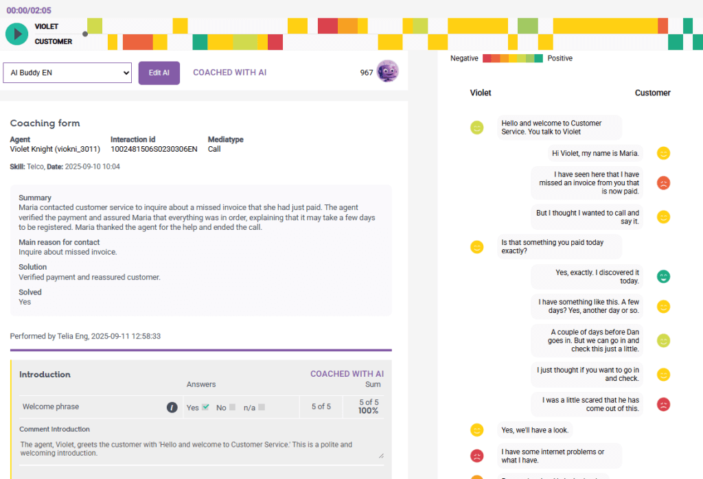 AI Buddy provides support in feedback and analysis processes and frees up time for team leaders to focus on development and improvement instead of administration.