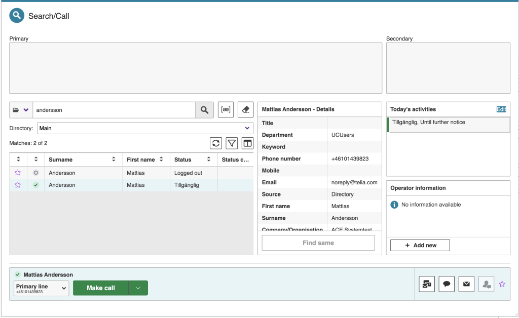 As a separate release following the major ACE 32, ACE Interact 32.0.1 is introduced with a significant update and improvement on how search matches are presented in the Search/Call card. This card in the Interact work area is central to contact handling for both agents and operators, as it is used to quickly find numbers, people and queues in ACE and linked UC catalogues.